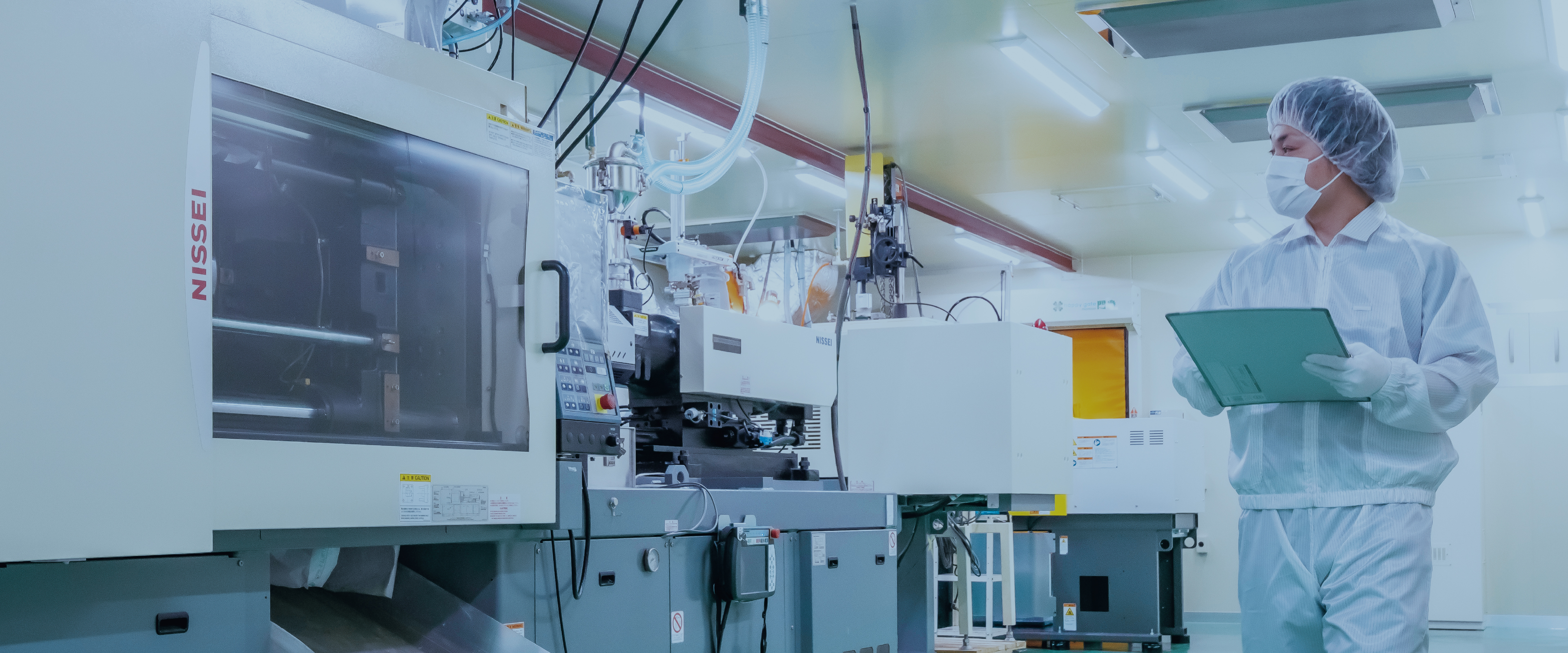 ISO14644-1に基づく築館工場でのクリーン成形により、医療分野や食品・化粧品分野への事業拡大を目指しています。